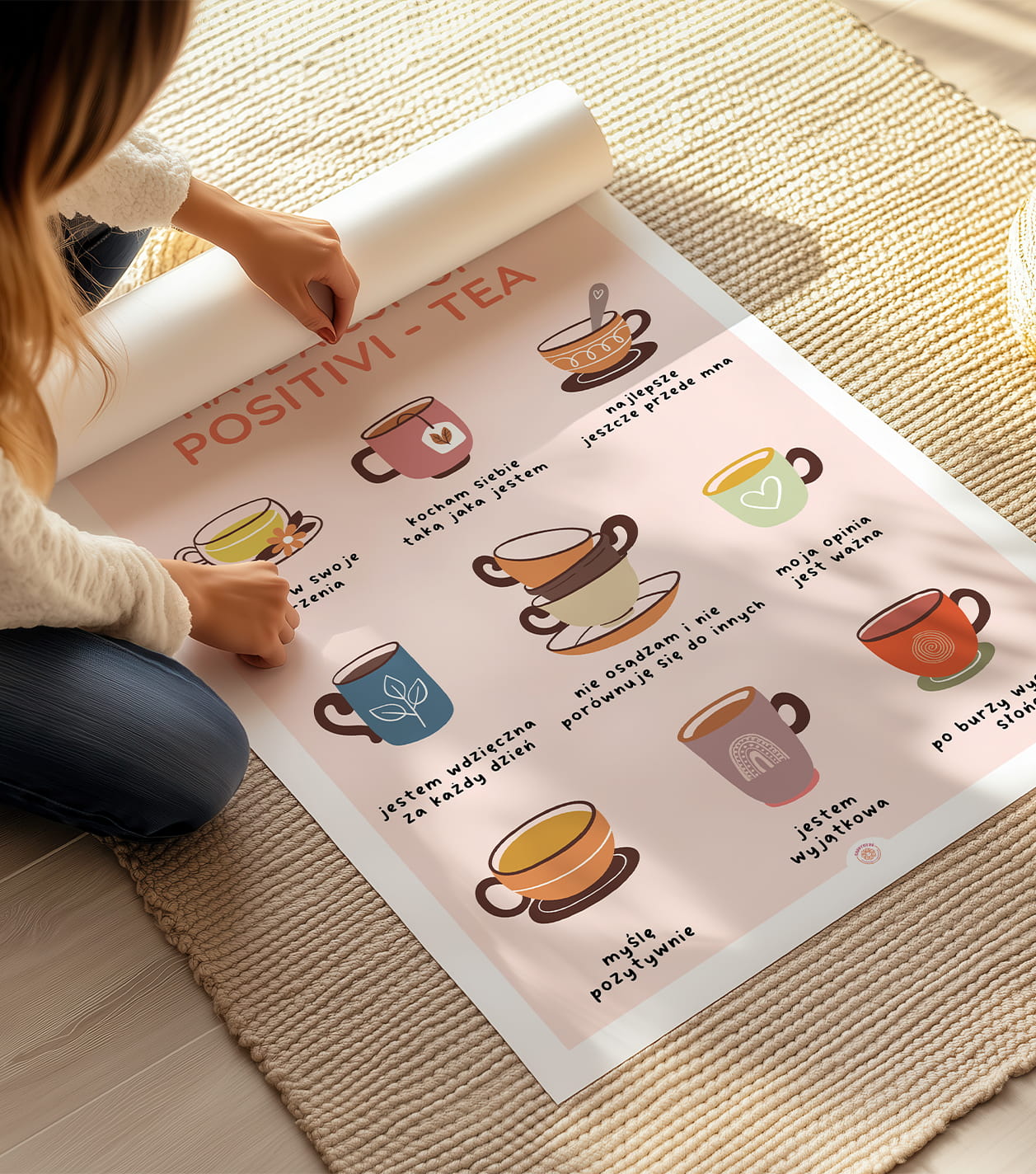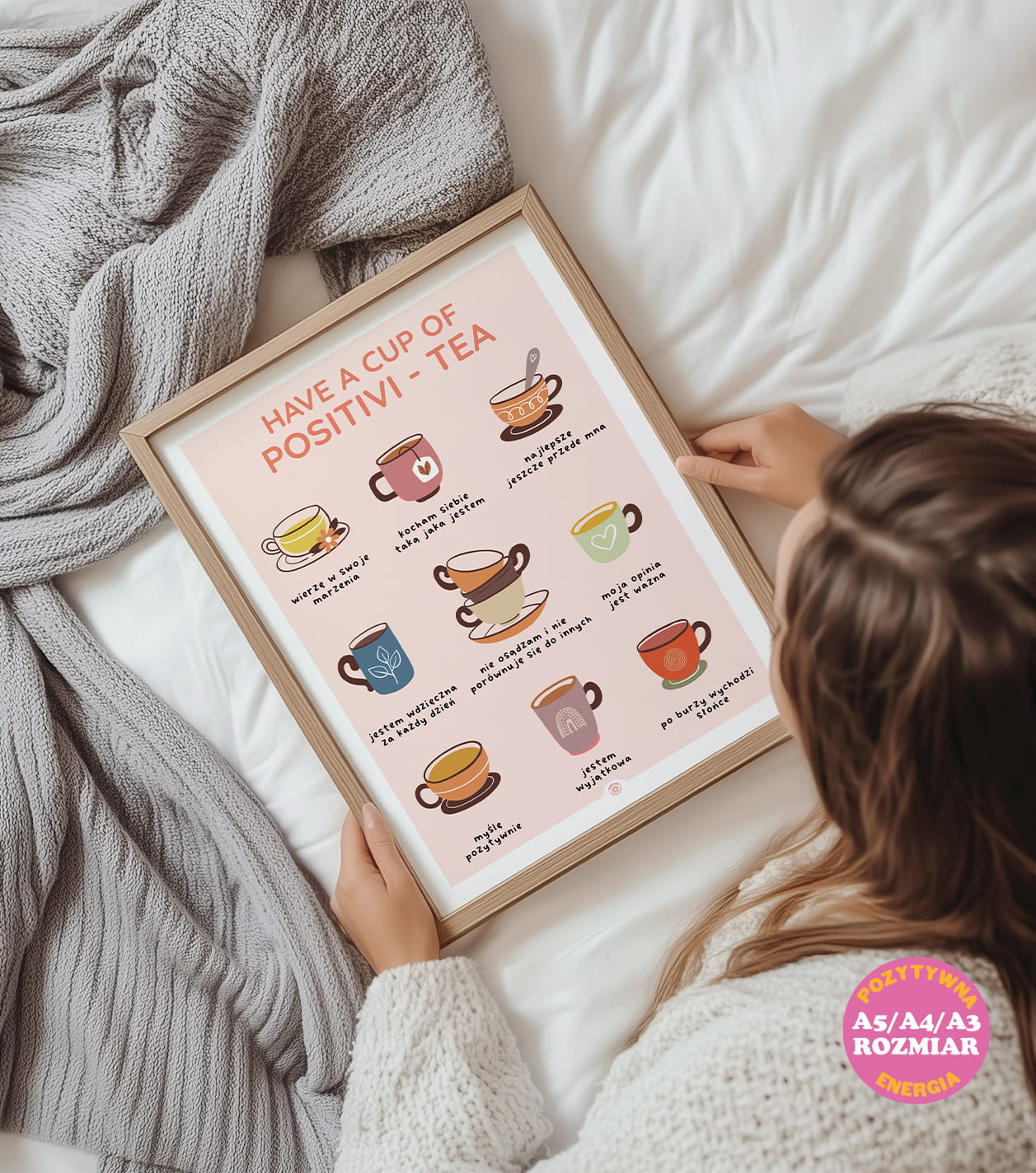 Rozpocznij dzień od kubka pozytywnej herbaty i otocz się inspirującą atmosferą dzięki plakatowi "Have a cup of positivi-tea". Ta urocza dekoracja będzie codziennym przypomnieniem o znaczeniu pozytywnego podejścia do życia.