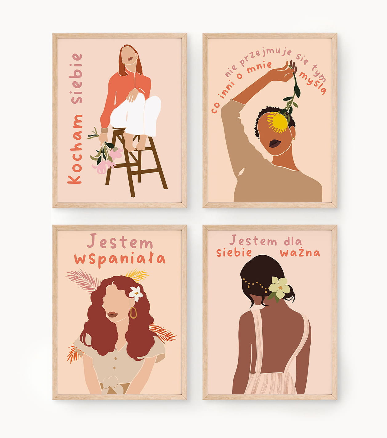 Zestaw 4 plakatów z pozytywnymi afirmacjami to esencja inspiracji, która ożywi każde wnętrze swoją energią i optymizmem. Każdy z czterech plakatów jest jak mała dawka motywacji, gotowa dodawać koloru i pozytywnej siły do Twojej przestrzeni.