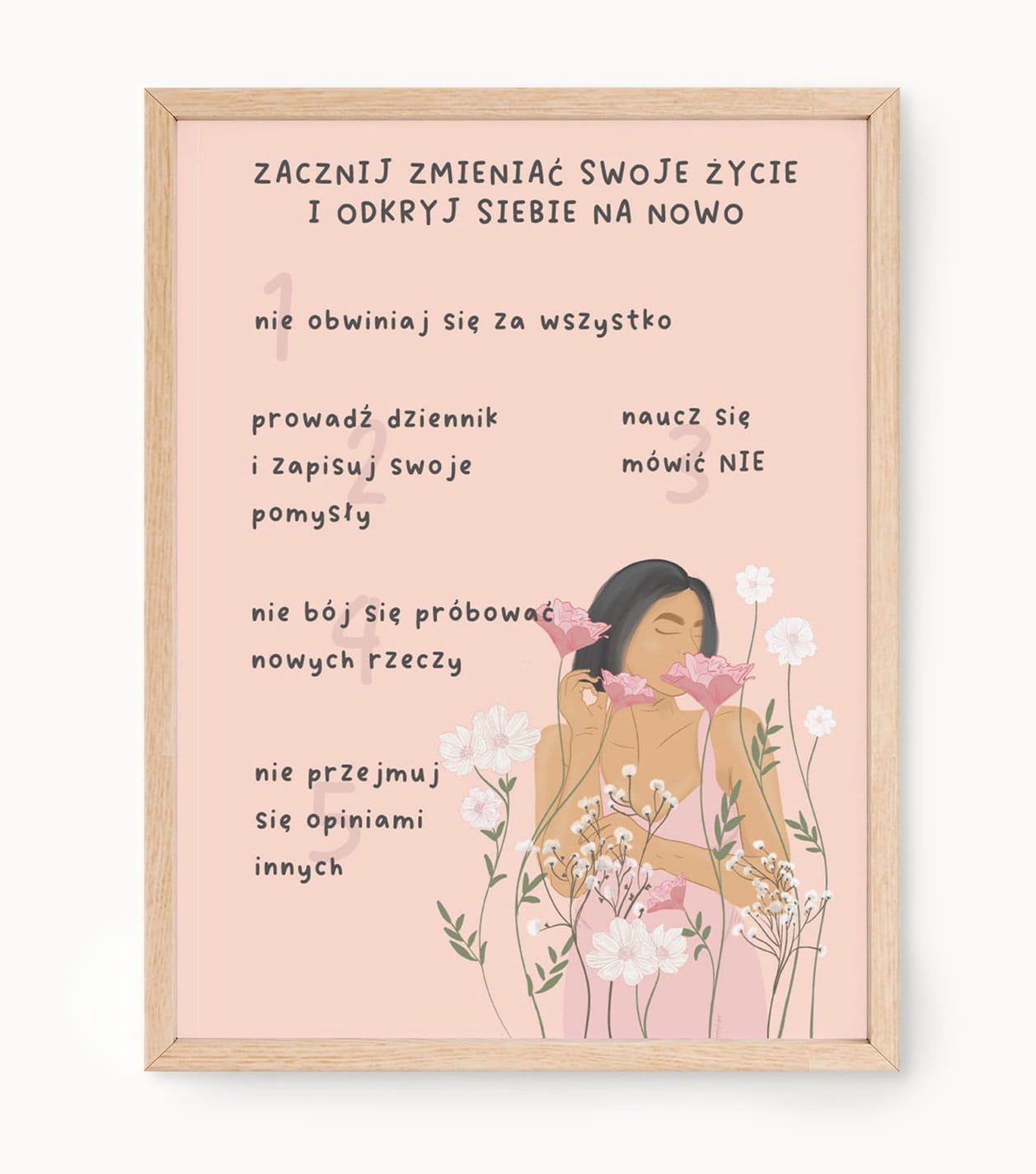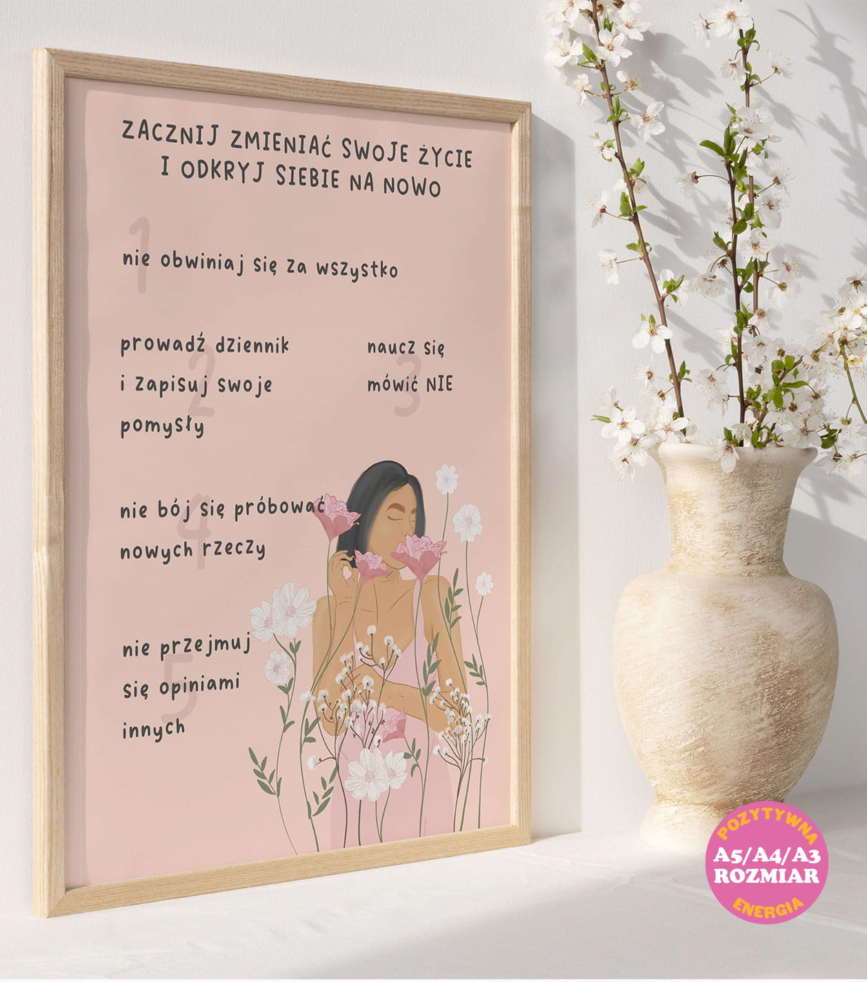 Plakat "Zacznij zmieniać swoje życie" będzie przypominał Ci o potędze decyzji i determinacji w kreowaniu własnego losu. Jego obecność w Twoim domu stworzy atmosferę inspiracji i motywacji, zachęcając do podjęcia działań mających na celu osiągnięcie zamierzonych celów. Unikalne Ręcznie Rysowane Ilustracje!